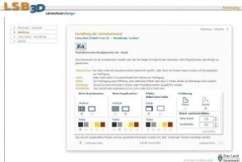 “LSB-3D” gürültü koruma duvarları tasarımında kullanılan interaktif bir tasarım yardımcısı. Üç boyutlu görüntüleme aracı sayesinde kullanıcı kendi arazisini, engebe, bina, garaj, araç, ağaç ve insan şablonlarını uygun yerlerine yerleştirerek, görüntüleyebiliyor. Gürültü koruma bariyeri tasarlaması için kullanıcıya duvar modelleri ve malzemeleri seçenekleri sunuluyor. Bunlar ahşap veya taş duvar olabildiği gibi modern tasarım çözümleri de olabiliyor.